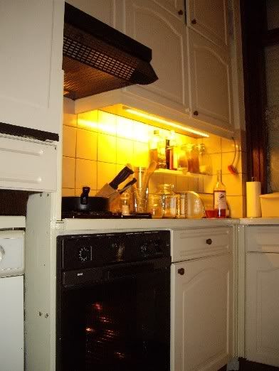 | Natuurlijk is er de afgelopen dagen ook nog wel wat gebeurd op verbouw gebied. Zo heb ik dus de afzuigkap aangesloten waarvoor ik het afvoerkanaal aan moest leggen door één keukenkastje. Dit ging helaas niet echt anders. Ik had eventueel wel een nieuw gat in de buitenmuur kunnen maken, maar dat vond ik een beetje overdreven. Bij de bouwmarkt had ik zo'n vlakkanaal plastic ding gekocht. Dat heb ik dus helemaal zelf aangelegd, gaten in kastjes gemaakt enzo. Ik ben best trots op mezelf De vloer via de buren gaat niet door. Ik ben er net geweest en ik heb besloten nu toch echt niet zo'n grote uitgave te willen gaan doen. Verder wisten zij, dat bij de Praxis hier in Roermond, het laminaat met 50% korting is omdat de Praxis gaat verhuizen. Morgen ga ik daar dus direct naar toe! Dan heb ik misschien een best leuke vloer voor een mooie prijs. Verder ben ik de soort van bijkeuken aan het schilderen. De muren zaten vol met vlekken en ik had nog een emmer latex staan. Een tijdje geleden heb ik al een houten schappenkast bij de IKEA gekocht. Deze ga ik daar neerzetten en dan kan ik daar het gereedschap inzetten en spulletjes zoals mijn broodbakmachine enzo. Als ik morgen mooi laminaat vind voor een leuke prijs koop ik ook meteen voor deze ruimte (3x3 meter). Het wordt nog wel wat met mijn huis | |