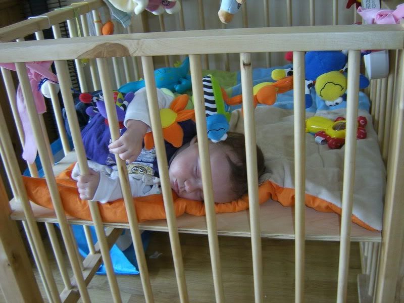 | miniminimonstertje behind bars, ondanks ingepakte armpje lekker aan t spelen | |