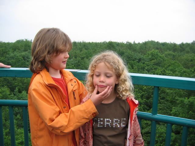 Gisteren zijn we weer naar het Boomkroonpad geweest. Sterre op zo'n wiebelding:![]() Op het pad boven de boomtoppen wou ik ze even op de foto zetten. Wouter helpt Sterre met een lach maken. ![]() ![]() Deze foto van Wouter op de wipwap is een beetje onscherp, maar hij lacht zo lief ![]() Vanmiddag gaat ie trouwens naar de kapper, het wordt nu wel héél lang. | |