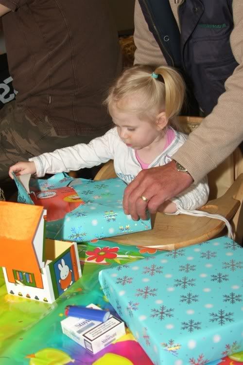 | Sanni, wat kijkt die kleine verbaast Meike, nu al iedereen om je vinger aan het winden | |