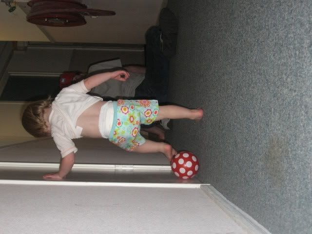 Na een hele dag van hot naar her gerend te hebben (ivm nieuwe huis) is madam helemaal knockout op ons bed tijdens het spelen in slaap gevallen.![]() Ik ga haar dus maar ff in haar pyama proberen te hijsen en overgooien in haar eigen mandje | |