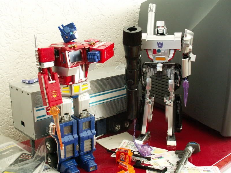 Gisteren eindelijk m'n Takara Masterpiece Megatron binnen gehad... staat nu nog redelijk gebroederlijk naast Optimus:
