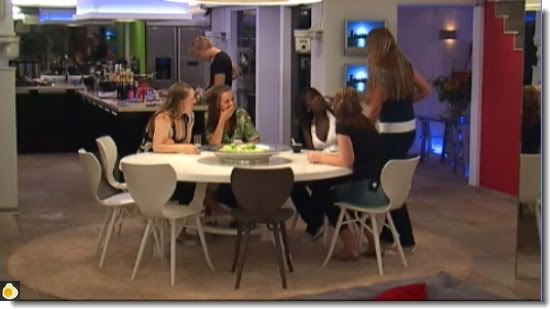 Even geleden stelde Dennis aan Japio voor dat de meiden in de jacuzzi moeten en ze blijven dan zelf langs de kant staan ..... Om de dames te kunnen keuren. Die het meest bloot gaat mag dan vannacht bijven. En het groene truitje moet in ieder geval weg van Japio