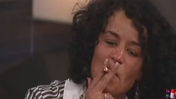 Ook echt op een moment dat Dellie er heel slecht uit ziet. Geen stijltang en niet veel make up...hihih wat zal zij zich onzeker en lelijk voelen nu. | |
