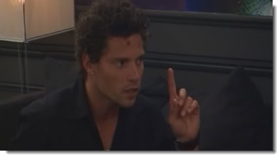 | Snelle COS omdat Brian weer uit zijn vel sprong in een 'discussie' met Amanda die nog aan de gang is. Amanda maakte Brian via omwegen duidelijk dat hij niet met de deelneemsters aan de Miss Bikini Contest mag rotzooien. Maar ze zei het niet rechtstreeks, en daardoor werd het een metadiscussie waarin Brian steeds brutaler werd: Houd je mond, hou je focking kop. En uiteindelijk: Als je een kutopmerking met je focking yapper maakt, stoor je m'n verhaal. Dan springt hij op terwijl hij een glas kapotgooit. ![]() [ Bericht 52% gewijzigd door Disana op 09-08-2007 00:03:43 ] | |