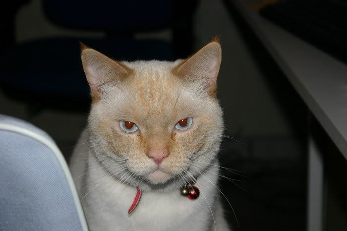 | Oeh ja, misschien kan je Baloe nog even snel een mp3-speler sturen met een cursus! Hij miauwt nu waarschijnlijk zo: miauwwwwwwwwwwwtttttt! Het is een Rotterdamse poes, dus.. 'wanneer en waar het ook maar kan, plak de T er achteran!' Dus stuurt die Rotterdammert een mp3-spelert! | |