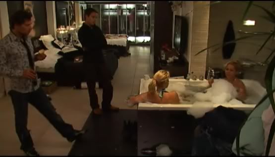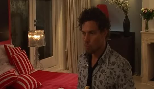 | (Nieuw pullover voor Dennis) Dennis: Ik wil dat alles lekker strak zit. Nadia: Schatje, wat ben je nu sexy. Lieke : Huub sukkel. (Ach, Huub kan wel tegen een gemeen(d) woordje.) | |
