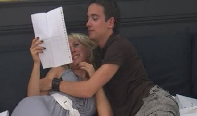 | Carlos is onverwachts gekomen, ze moeten allemaal sporten, daar gaat de girltalk en nagelsessie van Naad en Amanda. Amanda had het er eerder over dat ze niet begrijpt dat er foto's van haar en Dusty op het net staan. Naad zei dat er foto's van haar en Arlo/Tommie op DGK forum staan. Ik heb gekeken maar kan ze niet vinden. | |