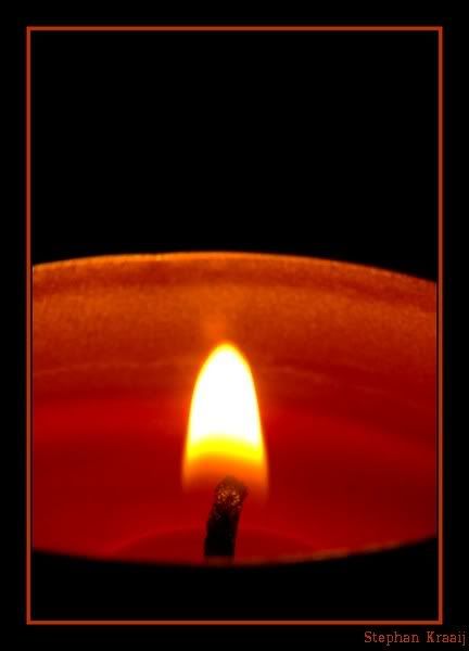 | + Leuke blik van het kindje -De te uitgebeten rechterkant (voor de kijker rechts) Tijdje geleden heb ik ook al geprobeerd om de rook van een uitgeblazen kaarsje vast te leggen. Niet gelukt, vandaag geprobeerd, weer niet gelukt haha. Dus maar een gewone kaarsfoto. ![]() | |