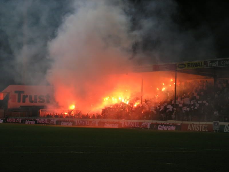 Zie je namelijk niet vaak, georganiseerd luchtvuurwerk aan het begin v/d wedstrijd.