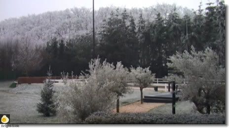 | Fraai winterplaatje van de tuin Met een stroomkabel over het grindpad ..... ![]() | |