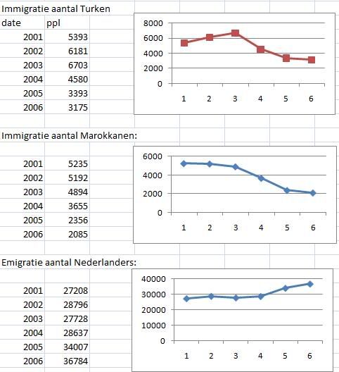 quote:Wat is "vruchten afwerpen" volgens jou? Tel je daarbij ook Nederlanders die vertrekken (en hun kennis en opleiding meenemen) omdat ze hun geliefde niet gemakkelijk kunnen importeren? Leuk voor de immigratie van Turkse en Marokkaanse bruidjes misschien, en dat klopt ook wel: Immigratie aantal Turken: 2001: 5393 2002: 6181 2003: 6703 2004: 4580 2005: 3393 2006: 3175 Immigratie aantal Marokkanen: 2001: 5235 2002: 5192 2003: 4894 2004: 3655 2005: 2356 2006: 2085 Emigratie aantal Nederlanders: 2001: 27.208 2002: 28.796 2003: 27.728 2004: 28.637 2005: 34.007 2006: 36.784 Cijfers uit Statline van CBS. En wat zien we? Een daling van 2000-2500 bij de Marokkaanse en Turkse immigranten die naar Nederland toe komen vanaf 2005, waarvan denk ik voor een groot deel importbruiden. En tevens een FLINKE stijging van ongeveer 9000 van Nederlanders die vertrekken sinds 2005. Dat schommelt al jaren zo tussen de 27 en 28 duizend...... het beleid van Verdonk treed in, en boem! opeens 8000 mee vertrekkende Nederlanders? Daar gaat je door belastingcenten betaalde kennis. ![]() Het is maar afvragen wat beter is..... 3000 minder importbruiden erbij, of 9000 meer opgeleide Nederlanders weg. (Het zijn niet de stratemakers en vuilnismannen die gaan emigreren.....) Er zitten hier figuren die jubelen dat er een paar duizend minder Turkse en Marokkaanse bruidjes minder naar Nederland komen, maar die vinden het blijkbaar niet erg dat het percentage allochtonen in Nederland toch hoger wordt vanwege meer vertrekkende Nederlanders? En zet daar even bij de cijfers van immigratie binnen de EU: 2004: 54.461 - 2005: 54.652 - 2006: 62.106 Zouden dat echt meer EU inwoners zijn, of simpelweg mensen die de België-route gebruiken? ![]() Ik ben van mening dat heel voorzichtig moet zijn met de term "vruchten afwerpen". Want zo'n nieuwsbericht verteld niet alles natuurlijk..... | |