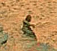 Hier een beter plaatje waarop te zien is dat het kleurverschil toch best laat geloven dat het een wezen met handen en een hoofd is, of het is een goede photoshop, of ze schieten de plaatjes van mars gewoon op aarde (komt ook overeen met kleurmanipulaties) of er is echt leven op mars.