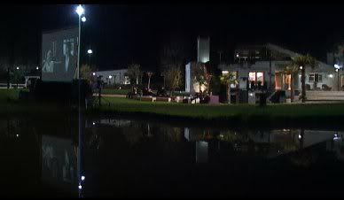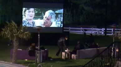 Oh dat lijkt me wel een leuke film die ze kijken. Met Ashton en Cameron Diaz. Het is gewoon een drive-in, maar dan zonder auto's. Maar mét tuinmeubilair.