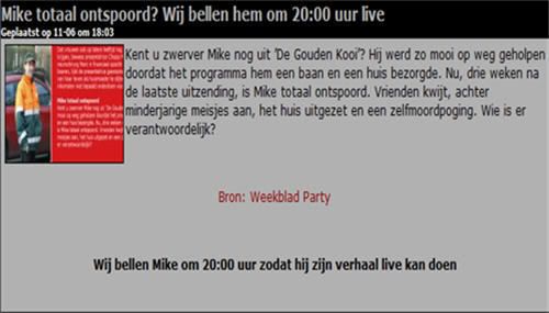 Het hele DGK gebeuren klopt geen reet van... Ze hebben de mensen niet zichzelf laten zijn en ze zijn op TV overgekomen als acteurs waar niemand zich mee wil associëren....quote:Op woensdag 11 juni 2008 20:08 schreef rooie3 het volgende: