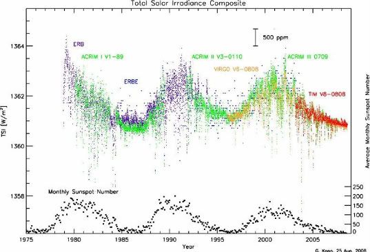 Overigens is de zonneactiviteit al zo'n 30 jaar praktisch hetzelfde (binnen de bandbreedte van de ongeveer 11 jarige zonnecyclus (die ook wel eens flink langer kan duren)). Vind ik altijd wel interessant om in dit soort topics nog maar eens te benadrukken. ![]() Momenteel zitten we in een minimumperiode zelfs ![]() Overigens is zonneactiviteit een onzekere factor voor de toekomst. Er zijn wetenschappers die beweren dat de zonneactiviteit dermate af gaat nemen dat global warming wel eens een pauze zou kunnen krijgen. Maar goed, dat haalt nog steeds de broeikastheorie niet onderuit, sterker nog, het zou hem wel eens meer dan ooit kunnen bevestigen. ![]() | ||