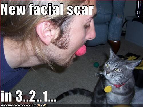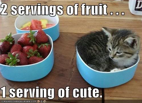 quote:Sad Cookie Cat 69% Affectionate, 32% Excitable, 84% Hungry You are the classic Shakespearian tragedy of the lolcat universe. The sad story of a baking a cookie, succumbing to gluttony, and in turn consuming the very cookie that was to be offered. Bad grammar ensues. | |