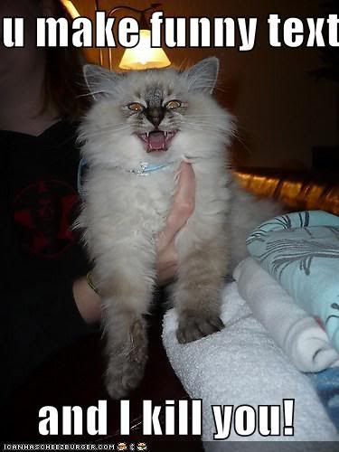 quote:Nier per se, je kan eigen foto's cappen en daar gezeik over krijgen of al gecapte foto's van http://icanhascheezburger.com/ halen en daar gezeik over krijgen ![]() ![]() ![]() | |