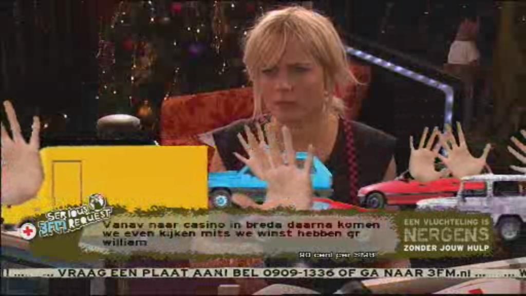 ![]() Van 19 t/m 24 december 2008 vind de 5e editie van Serious Request plaats, ditmaal op de Grote Markt in Breda. Dit jaar is er gekozen om geld op te halen voor vluchtelingen over de hele wereld, want 'Een vluchteling is NERGENS zonder jouw hulp'! ![]() Dit jaar zijn de DJ's niet door een stemming verkozen, maar zijn ze aangewezen en in hun eigen programma overvallen, waarna ze voor 24 uur op de vlucht moesten in Nederland. De jocks die dit jaar een wel heel minimaal kerstdiner krijgen te verduren zijn: › Giel Beelen › Coen Swijnenberg › Paul Rabbering ![]() Serious Request is natuurlijk 24/7 te beluisteren via 3FM, te ontvangen via FM-radio, kabelradio, internet (32 kbps WMA, 96 kbps WMA, 128kbps MP3, 24kbps AAC+ of 64kbps AAC+) en diverse andere manieren. Behalve luisteren kan je ook kijken naar Serious Request! Dit kan onder andere op delen van de dag via de Publieke TV-zenders: › Nederland 1: De beelden worden op dit kanaal elk halfuur onderbroken door het NOS Journaal. - Vrijdag 19 december: 9:10 - 16:00 uur - Zaterdag 20 december: 6:30 - 16:00 uur - Zondag 21 december: 6:30 - 8:30 uur - Maandag 22 december: 7:13 - 15:30 uur - Dinsdag 23 december: 7:13 - 16:00 uur - Woensdag 24 december: 7:13 - 18:00 uur › Nederland 3: elke nacht vanaf ongeveer 1 uur tot 7 uur de volgende ochtend, zonder onderbrekingen! Daarnaast is Serious Request ook dit jaar weer via speciale kanalen bij de kabelmaatschappijen te zien, waaronder: › Ziggo: Analoog via het preview/info-kanaal en digitaal via kanaal 999. › UPC: Digitaal via 101 op kanaal 28. › Caiway: Digitaal via 101 op kanaal 26. Weet je meer informatie over een andere kabelboer? Voeg het toe! › Het digitale kanaal 101 van BNN zend ook 24/7 uit met beelden vanuit het Glazen Huis. En natuurlijk is alles ook met beeld te volgen via internet. Ga hiervoor naar de 3FM-website, 3FMFan of via deze link of open de cams los: › De TV-beelden: http://www.omroep.nl/live/3fm_glazenhuis_live.asx › Zijkant DJ: http://www.omroep.nl/live/3fm_glazenhuis_webcam01.asx › DJ recht van voren: http://www.omroep.nl/live/3fm_glazenhuis_webcam02.asx › Brievenbus: http://www.omroep.nl/live/3fm_glazenhuis_webcam03.asx › Buitenkant huis: http://www.omroep.nl/live/3fm_glazenhuis_webcam04.asx Maar dit jaar ook voor het eerst via jouw mobiel. Download hiervoor de speciale 3FM applicatie voor op je mobiele telefoon, klik hier door voor meer informatie Verder is elke dag tussen 19.30 en 20.30 uur een Serious Request Update op Nederland 3, waarin Sophie Hilbrand en Sander Lantinga vertellen wat er de afgelopen dag is gebeurd en wat er nog staat te gebeuren. Ook is het mogelijk om een speciaal ervoor geprepareerd programma te gebruiken waardoor je geen extra programma's hoeft te gebruiken. Dit programma is HIER te downloaden. ![]() Bij een 24/7 uitzending kan het bijna niet anders dat je wat mist. Wil je weten wat er cin de afgelopen uren is gebeurd? Kijk dan in de Serious Request agenda van 3FM of doe zelf mee met het bijhouden van gebeurtenissen in het gebeurtenissen-logboek op 3FMFan! Heb je een request ingestuurd? Voer deze dan in op http://fok.3fmfan.nl/requests/ en je krijgt een mailtje als iemand zegt 'm te hebben gehoord! ![]() › muisje-eliza heeft samen met DJ Sandstorm (bekend van de 3FM jaarmix en het wekelijkse Operation DJ Sandstorm in Ekstra Weekend) een actie opgezet: de hoogste bieder krijgt een optreden van DJ Sandstorm bij hem thuis / op het werk. Meer informatie is te vinden op DJ Sandstorm into Serious Request, waar je tevens kan bieden op de actie. ![]() › Ook de FOK!crew heeft een actie opgezet! Ga naar [FOK!actie] Serious Request 3FM voor meer informatie. › Op de FOK!Weblog worden er berichten geplaatste met foto's en andere wetenswaardigheden! Zelf je eigen actie opzetten? Ga naar http://www.komzelfinactie.nl voor meer informatie. ![]() Degene die het topic sluit (door middel van de 301e post) opent het volgende deel! De OP is te vinden op deze plek. Een eerder topic teruglezen? Ga dan naar deze pagina voor een overzicht. Oh, en verder worden er natuurlijk ook statistieken bijgehouden! Let op dat je in de TT een spatie zet tussen de apenstaart en 3fm, anders wordt hij niet meegenomen in de stats. | |