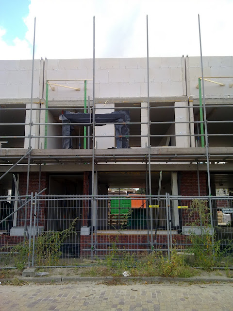 | Nee, wij hebben een stijlwoning. Het blok helemaal op de hoek aan de parkkant vanaf de lidl gezien. Ons huis is bijna helemaal dicht, alleen beneden nog de laatste kozijnen en ramen erin. | |