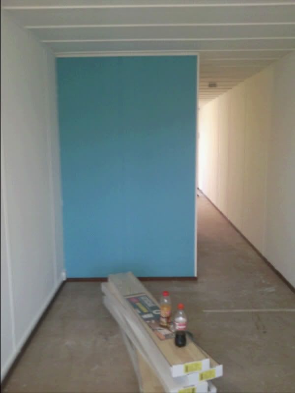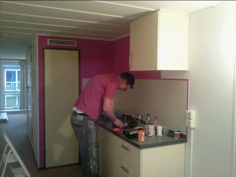 Ben gister wezen schilderen in mijn nieuwe huis ![]() Keuken met papa: ![]() Muurtje waar straks mijn bed tegenaan komt: ![]() Gelukkig kun je de beide muren nooit tegelijk zien, anders lijkt het allemaal wel heel kauwgombal ![]() | |