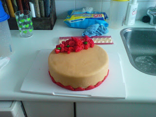 Ik heb gisteren een verjaardagstaart gedecoreerd, maar vond hem niet mooi genoeg geworden. Gelukkig is de verjaardag pas over twee weken (ik was van plan hem in te vriezen), dus heb ik nog genoeg tijd om een nieuwe te maken. Nu zal ik deze dus helaas zelf aan moeten snijden... ![]() | |