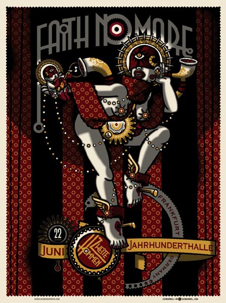 o.a. adam jones van tool dusquote:Inside the rock poster frame have a few new Faith No More tour posts up designed by various people including Adam Jones. Apparently they will be purchasable from shows.