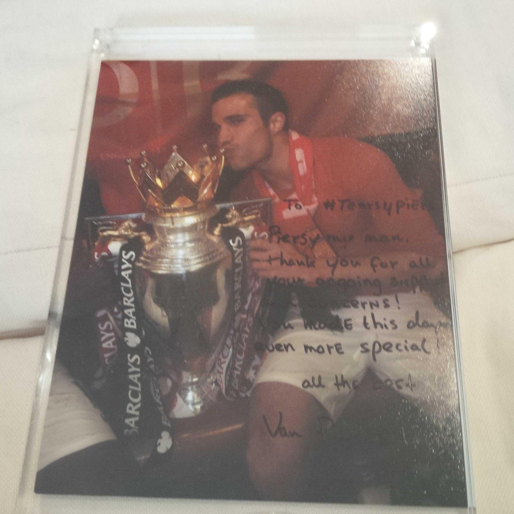 twitter:piersmorgan twitterde op vrijdag 24-05-2013 om 16:29:12The package contained a double sided framed photograph. Of Van Pursestrings kissing the Premier League trophy. reageer retweet