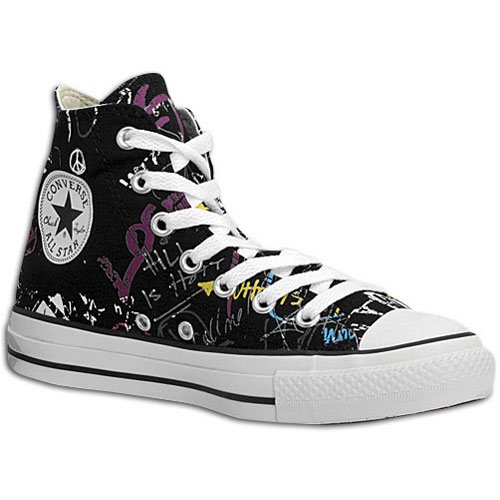 | Chuck Taylor All-Stars, ook wel Chucks en All-Stars, zijn schoenen van canvas en rubber die worden geproduceerd door Converse, een dochteronderneming van Nike. Vroeger was de All Star meer een lap stof met een bodem van leer of rubber, maar door de jaren begon de All Star meer te lijken op de schoen die vandaag de dag wordt verkocht. Er zijn 2 verschillende soorten: hoge [hi-top] en lage [lo-top]. Ondertussen zijn er ook al slip-on's [lage zonder veters maar met rekkers.], de X-hi [12-gaatse 'laarzen', soms ook overgeplooid.], de canvasreeks [nogal artistiek], de leathercollectie [in leder] en de suedereeks [in velours of fluweel]. Er zijn ook een paar rode draden door hun collectie: de sneakers [iets bredere, lompere schoenen die een hoog contrast geven met de originele strakke Chuck Taylor reeks], de varvatos [iets klassieker], onlangs nieuw zijn de basketball collection [echte sportschoenen] en de red [een artistieke reeks]. Deel 1 | Deel 2 | Deel 3 | Deel 4 | Deel 5 | Deel 6 | Deel 7 | Deel 8 | Deel 9 | Deel 10 | |