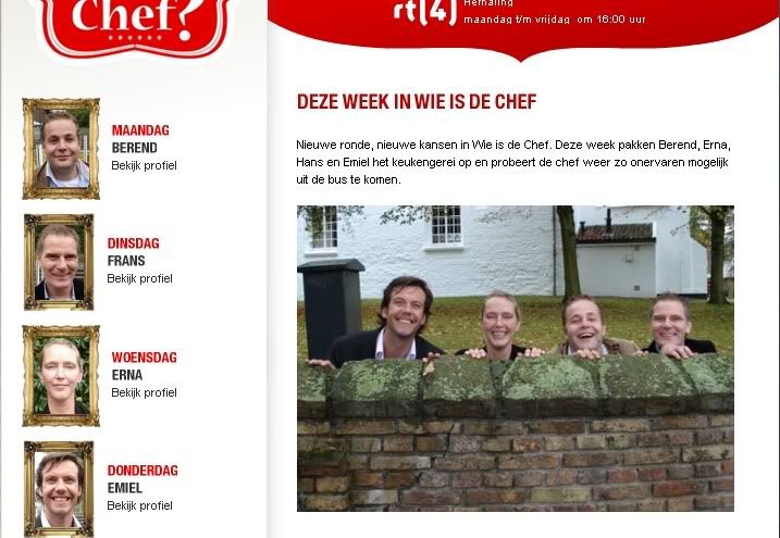 Ik zapte er zonet voor het eerst in tijden weer eens langs en ontdek nu dat wij dus nu ook niet weten wie de chef isIk ga voor de dame (voor deze week dus), Ineke.