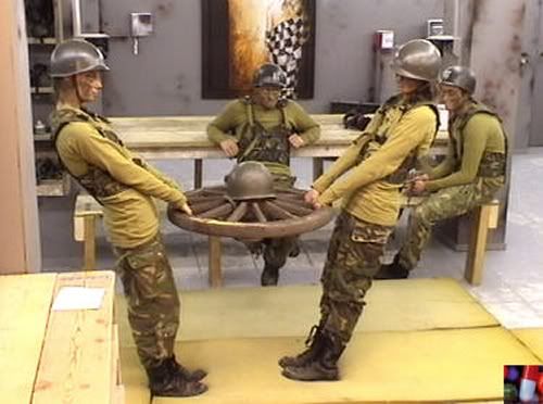 lijkt wel een zeskamp steeds, domme opdracht, en straks Jeroen en Pim zeker armpje drukken??