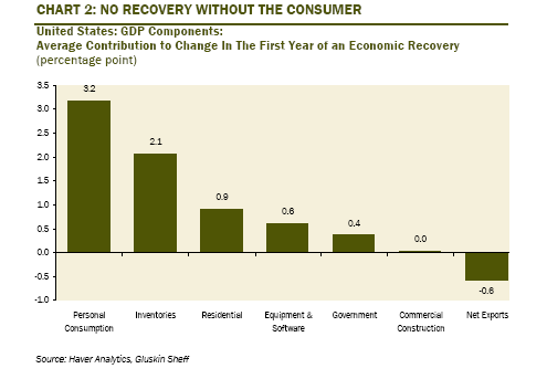 “Consumer spending is unlikely to rise much faster than income” because of the need to boost savings, he said. “Weak income growth will be an effective constraint on the pace of consumer spending.”
