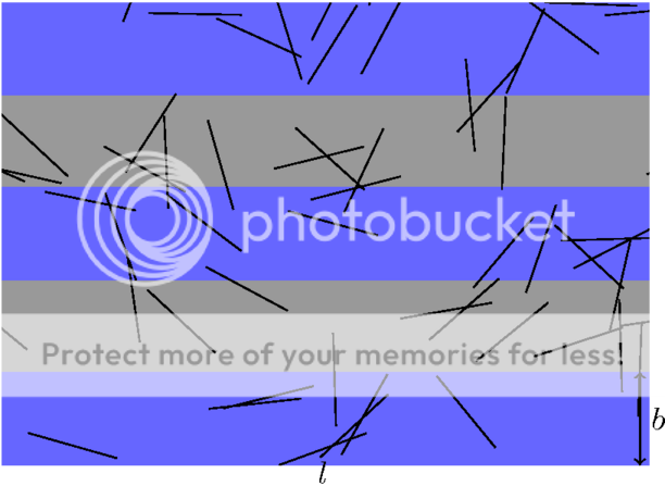 Roept wel de vraag op hoe de formule er uit ziet voor drie dimensionale objecten. Stel dat ik een knikker met doorsnede d laat vallen en de kans wil berekenen dat die knikker een naad kruist. Komt daar niet gewoon precies dezelfde formule uit (met l=d) ? En wat als ik kubusjes laat vallen?