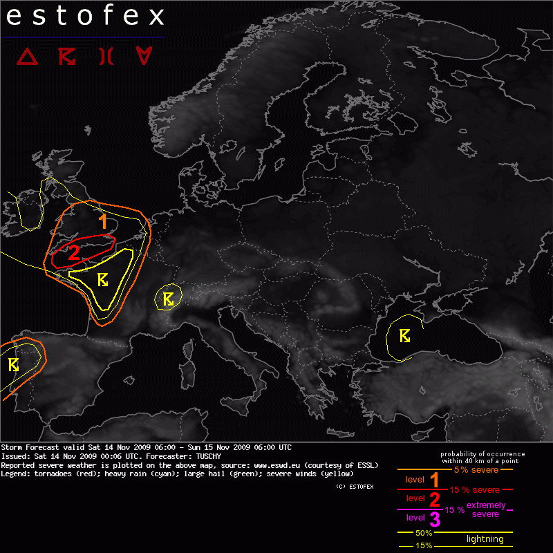 quote:Ik fiets 's middags altijd west - oost, dus waarschijnlijk heb ik er net mazzel mee. 's Morgens daarentegen ...... Morgenochtend dus drama als ik dat Estofex-plaatje een beetje goed interpreteer. | |