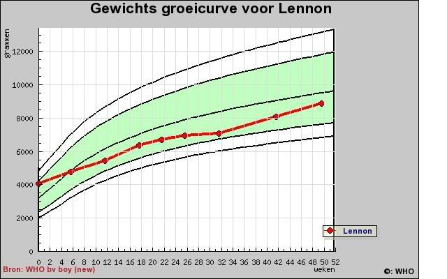 Nou Lennon is weer helemaal goedgekeurd op cb en heeft DKTP/pneumokokken prik gehad. Hij is nu 8880 gram en 75,2 cm groot. Vanaf vandaag mag hij al (helemaal) met ons gaan mee-eten, mag hij halfvolle/magere melk ipv opvolgmelk, moeten we de avondpap gaan afbouwen tot helemaal niet meer geven, mag hij 's nachts geen melk meer -> liever water, mag hij nog maar max. 300 ml melk per dag dus de tussendemiddag fles mag helemaal weg en moet vervangen worden door thee en moet hij vitamine D druppeltjes. Een hele verandering dus voor hem. Ik vraag me af of hij een hele nacht door zonder avondpapje gaat redden, maar we gaan het proberen en anders ga ik hem 's avonds wat fruit geven, is altijd gezond.