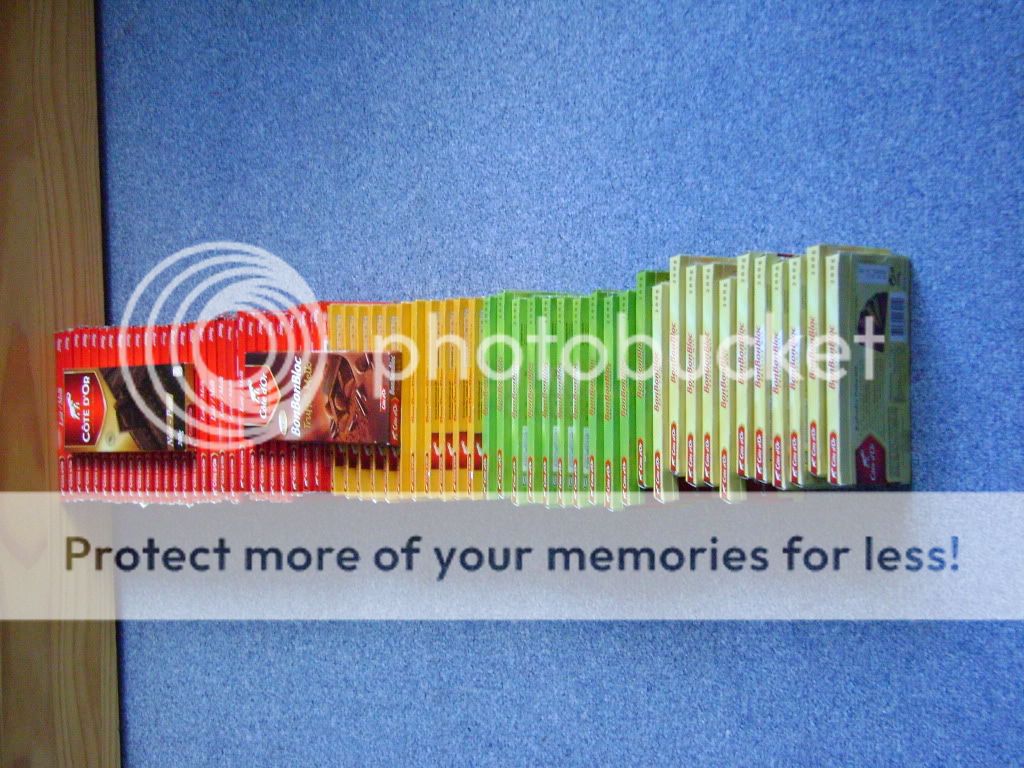 quote: ![]() Dit zijn er ongeveer 72 van de 330 (dit was op maandag die week gehaald, die dinsdag waren de repen op de afbeelding aangepast. Toen waren Puur Praliné en Cote D'Or Melk met hazelnoot ofzo, nog niet aangepast. (En met pecannoten ook niet) dus zijn we die zondag rondje stad gegaan en hebben er nog stuk of 180 bij gehaald (Die zaterdag nog 70 bij Barendrecht Carnisseveste en 'het dorp'(daar is die foto van O.US met zijn blije kop gemaakt En het eerste wat we gehaald hadden (weet niet of ik het al gepost had, geen zin om te kijken ![]() | |
