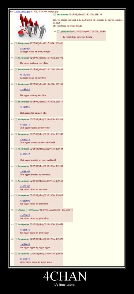 Hoe lang kan een negerin haar stront op houden?SPOILER ![]() | |