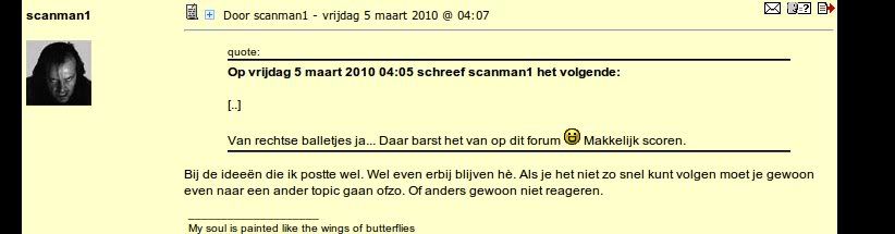 Ga je nou je eigen quotes aanvallen?quote:Op vrijdag 5 maart 2010 04:07 schreef scanman1 het volgende: