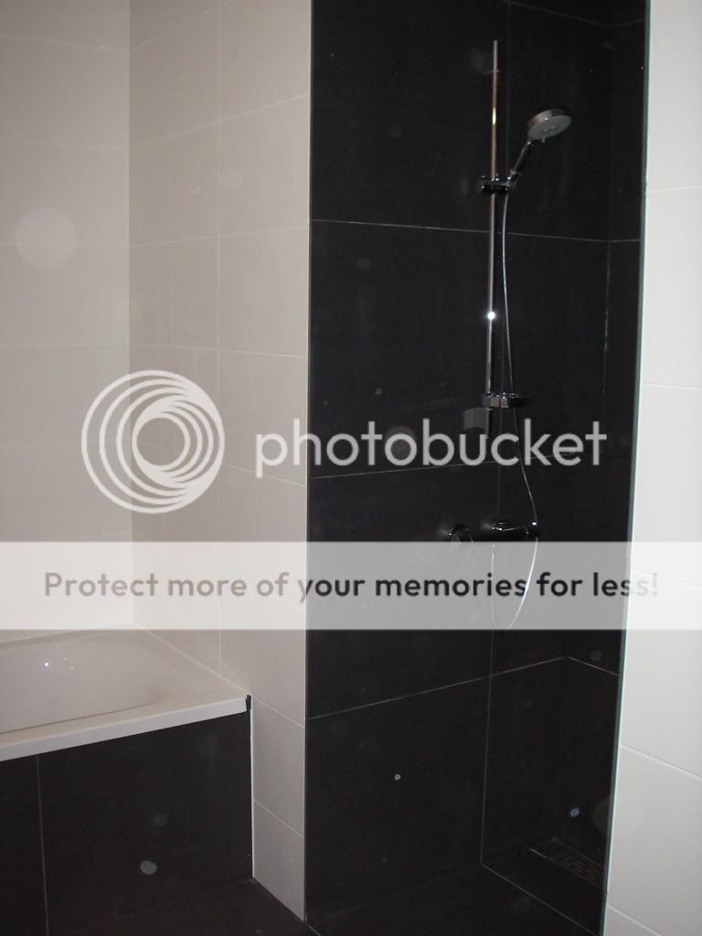 Waar komt die wand vandaan, als ik vragen mag? (Zit zelf ook te denken aan klein wandje/deurtje in mijn douche, tegen het spetteren...) | |