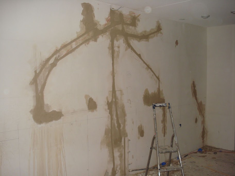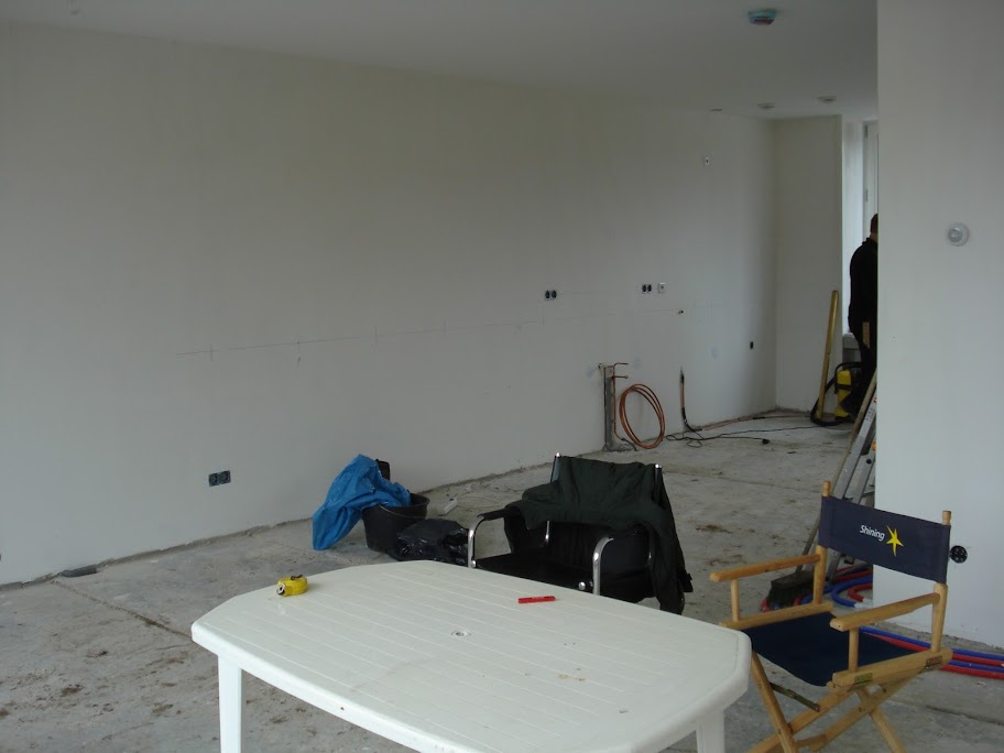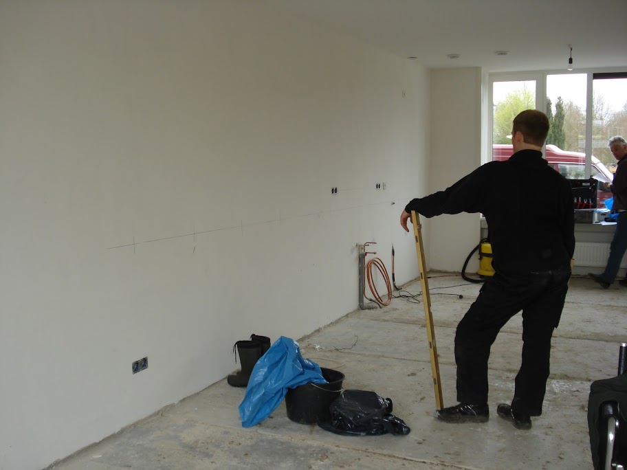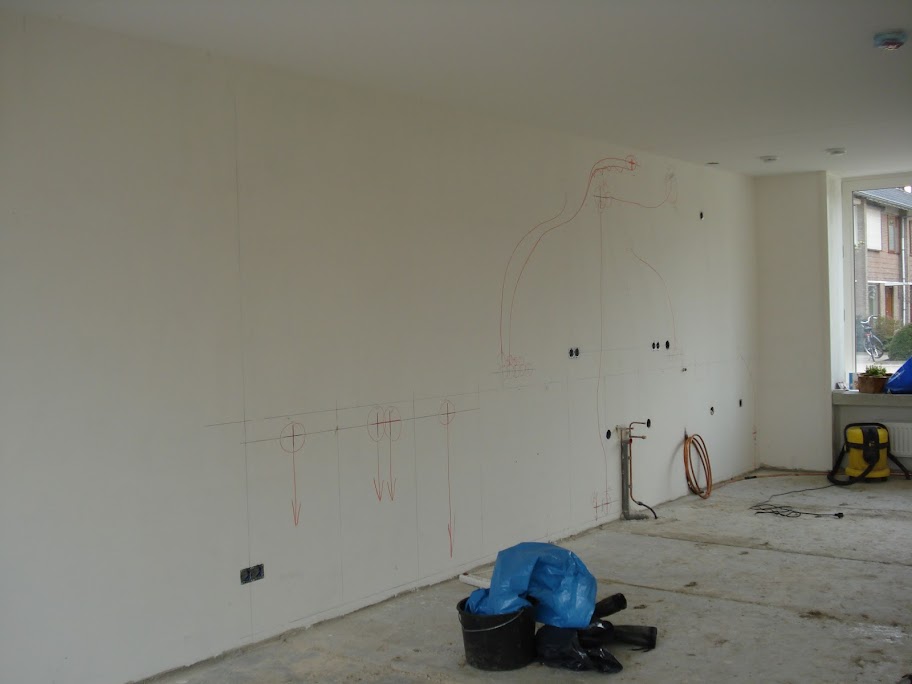 quote:Tot onze verbazing zijn veel muren echt al recht en hoeven niet meer gestuukt te worden. Aantal muurtjes nog wel dus die laten we vlak zetten. Verder gaan we gewoon eerst sausen tot de muren goed uitgewerkt zijn. | |