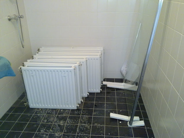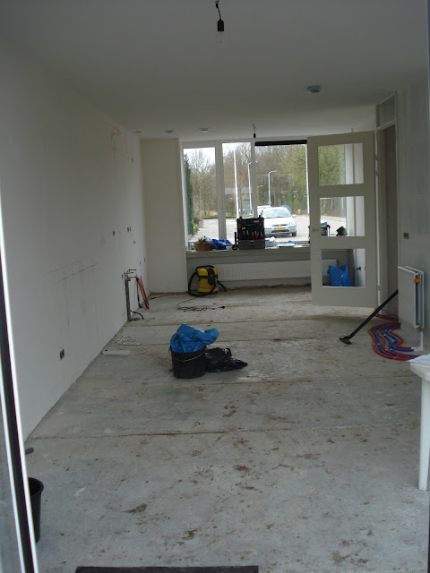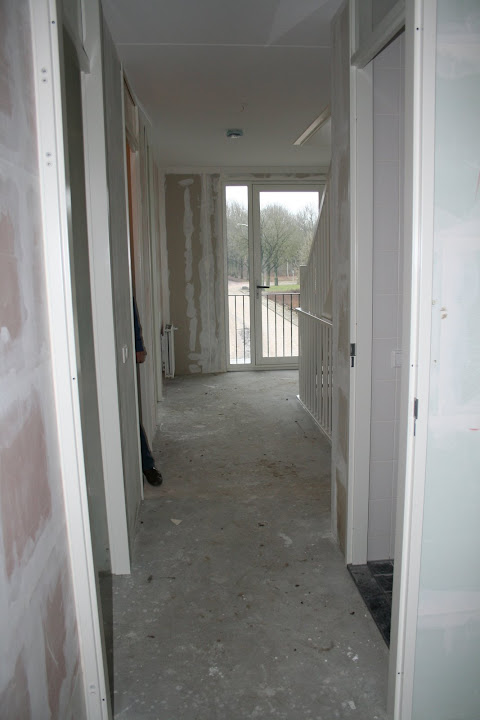 all right!!! vandaag was project oplevering! was fijn om mannetje van vereniging eigen huis erbij te hebben, die komt wel op voor je belangen zeg maar. de cementvloer op de 1e etage en zolder is helemaal in brokken gescheurd (is in heel het blok ongeveer) dus zijn ze nu effe aan het kijken of die scheuren gevuld gaan worden of opnieuw een laag prut over heen komt. verder stak er een nog een leiding uit het plafond die uit de vloer moest komen in de badkamer (wij hebben die muren ietsje anders gezet), dus die wordt morgen verlegd. begane grond cementdekvloer kwamen we nu net achter dat die niet helemaal waterpas is, dus effe kijken wat mee te doen.. maar eigenlijk verder..echt weinig opleverpunten! morgen komen de badkamertijgers! | |