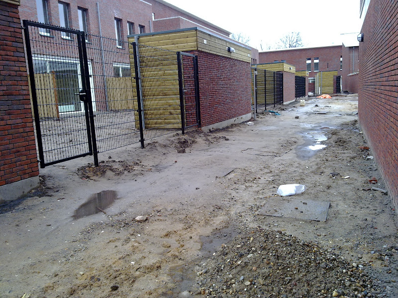 net ook nog even bij het huis wezen kijken: De goede en nieuwe tussendeur tussen de gang en keuken hangt erin ![]() ![]() De hekken om de tuin staan er ![]() Huis is nu voorzien van beveiliging ![]() De ingang van parkeerplaatsen en de achterkanten van de tuinen blok 8 ![]() | |