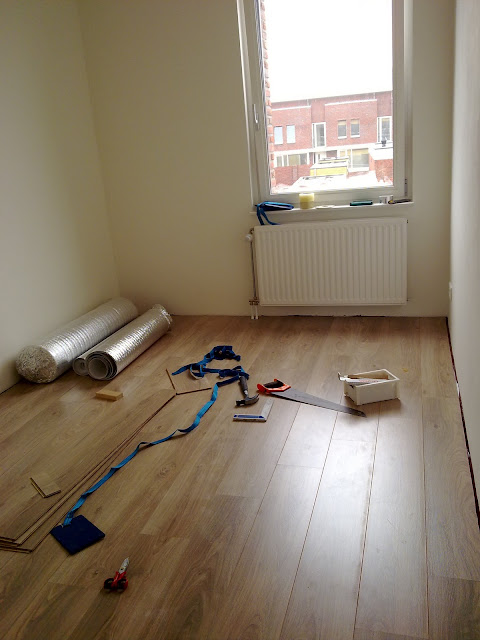 En zo gezegd, zo gedaan! Laminaat! De logeerkamer ligt het er al in. Alleen de plinten moeten er nog op: ![]() ![]() En de lampen op zolder hangen. (moeten alleen nog een stuk omhoog) ![]() ![]() Verder hebben we gisteren de rest van de kamers allemaal geschilderd en alle radiatoren op de eerste etage weer terug gehangen ![]() | |