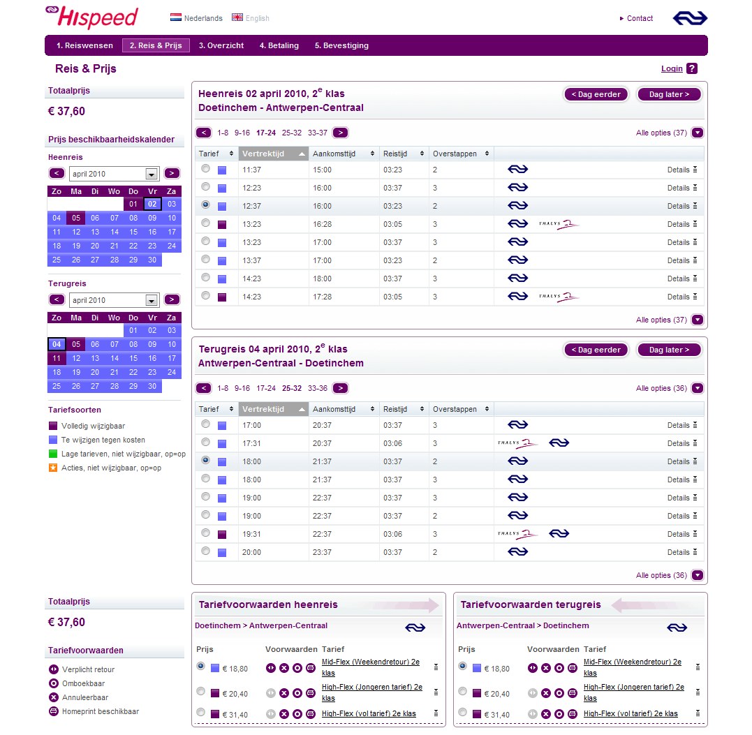 De 'high flex'-optie is zo te zien 2 enkeltjes en kost ¤ 40,80. Ik heb de optie "Kortingskaart" aangevinkt, en aangegeven dat je een jongere bent. Op http://onlineboeken.nshispeed.nl/microtips/ kun je alle opties bekijken, en ook aangeven dat je een VDU hebt.quote:Reisvoorwaarden
