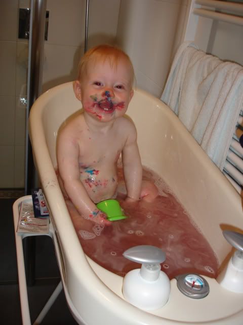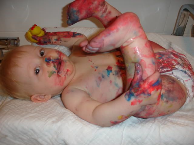 Plakkaatverf op handjes / voetjes?? Lijkt me niet slim!!