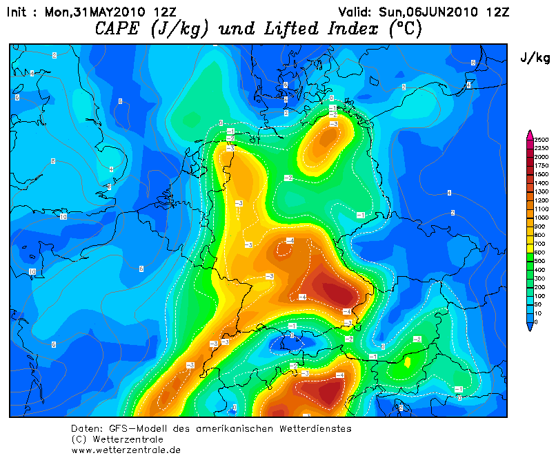 De Cape bij keulen en dusseldorf loopt op naar zo'n 1500 a 1700 J/kg mooie waarden dusquote:Op maandag 31 mei 2010 20:48 schreef horned_reaper het volgende: