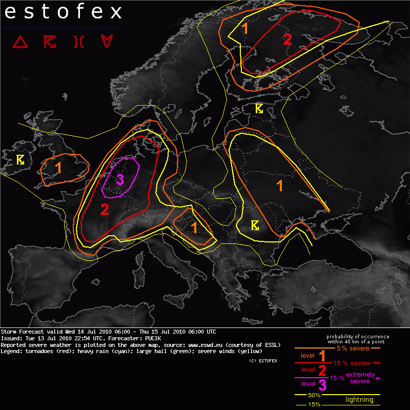 | estofex heeft nu voor de 8ste keer een level 3 uitgegeven in 7 jaar tijd. dus best heftig weer opkomst.sluit ramen en deuren en leg je tuinstoelen plat doe de was in de droger en spoel je wc een paar keer goed door voordat het noodweer eraan komt. | |