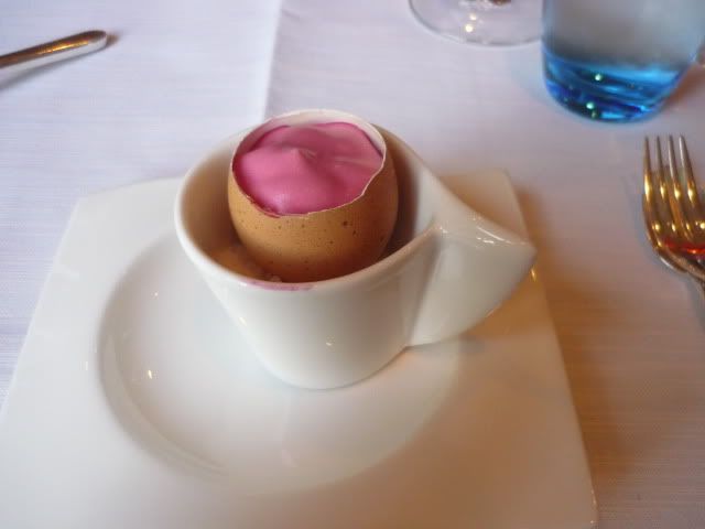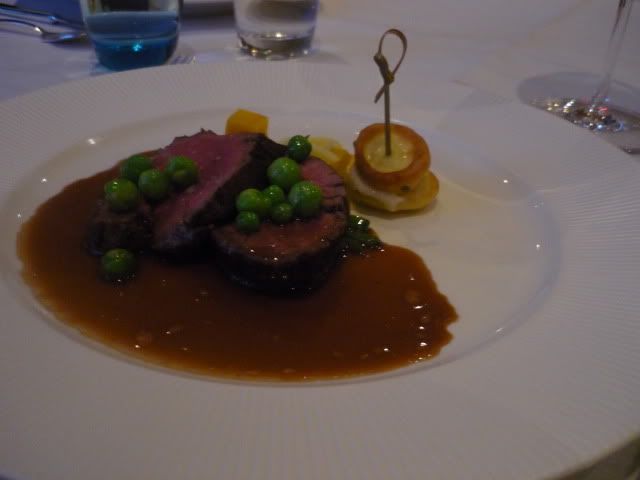 Het tussengerecht, de extra gang, was plakjes eendenborstfilet met knolselderijpuree en een saus met sinaasappel en ? (geen idee meer, maar ik krijg het menu nog in de mail). Ook erg lekker, al waren alle onderdelen wel zacht. Voor de eend erg goed natuurlijk, bij de puree miste ik misschien wat bite.