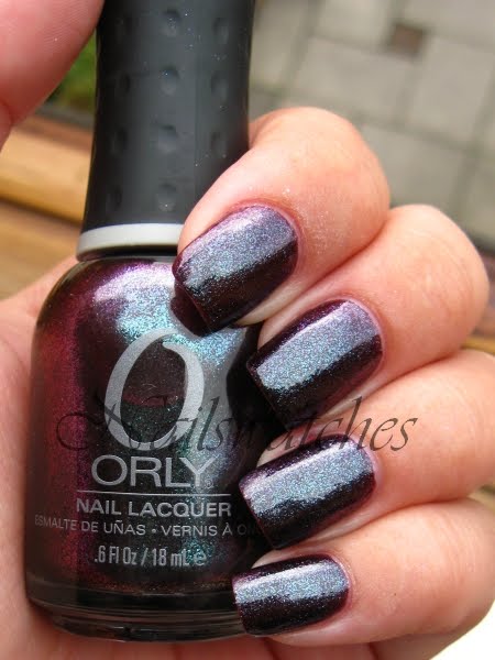 Kinetics Darkside met China Glaze Ink, Milani Foxy Lady en gestempeld met konad Black Pearl en imageplate M57