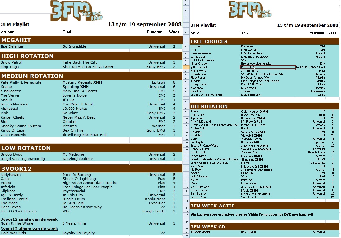 Als je van muziek houdt, dan luister je naar...![]() ![]() • Bekijk de website of de fansite voor meer informatie. • Luisteren in 32 kbps WMA, 128 kbps WMA, 128kbps MP3, 24kbps AAC+ of 64kbps AAC+. • Bekijk de binnenkant van de radiostudio via de 1 Mbps WMV-stream • Uitzending terugluisteren (Windows Media)? • Hoe heette dat ene nummer ook alweer? Bekijk de muziekstatistieken. • Is FOK! traag, down of anderszins de weg kwijt? Of wil je gewoon chatten met je mede-3FM-verslaafden? Chat dan mee in de enige echte FOK!3FM Chat! • Statistieken van deze topicreeks. • Overzicht van de voorgaande topics in deze reeks. (of ga naar http://forum.3fmfan.nl/ om altijd direct naar het laatste topic te gaan). • Chat, fok, kijk en cam met 3FM tijdens de Vrijdag Freaknacht of andere Programma's. 3FM-ers op FOK! zijn: DJ's › Giel Beelen (Giel.Beelen) › Gerard Ekdom (Ekdom) › Sander Guis (Guis) › Timur Perlin (Timur) › Roosmarijn Reijmer (antiroos) › Annemieke Schollaardt (annemic) › Michiel Veenstra (MichielV) › Domien Verschuuren (DomienVerschuuren) Producers › Tjitse Leemhuis (Tjitse, producer Ekstra Weekend) Overige 3FM-medewerkers › Michiel de Romijn (afzuigkapfilter, knoppendraaier en schuiventrekker 3FM/NOB) › Rachid Finge (Rachidfinge, nieuwslezer NOS radionieuws en NOS headlines) ![]() Deze OP is hier te vinden. Degene die de laatste post in het topic heeft geplaatst (de LaPo dus) opent het volgende deel! | |